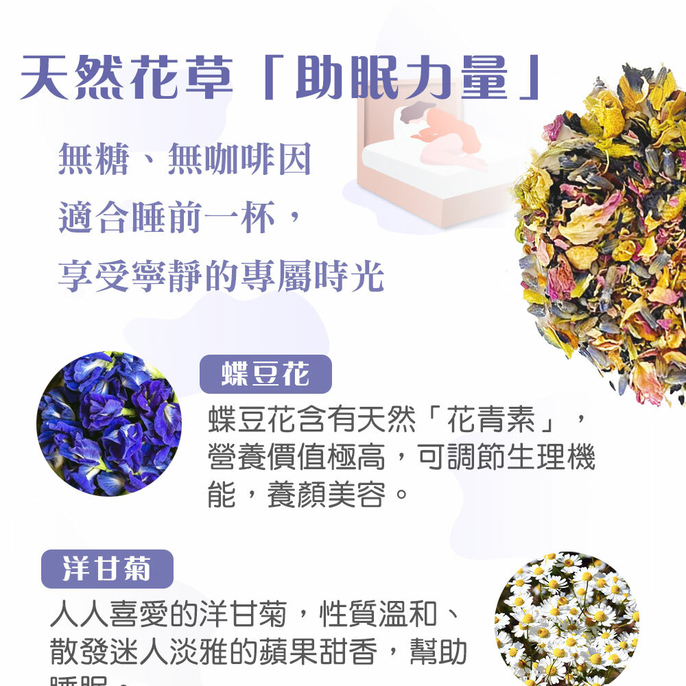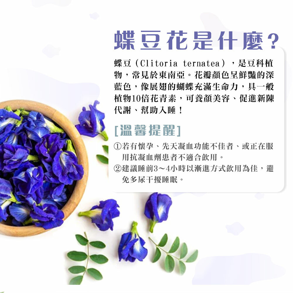 ◎ Colorful butterfly bean flowers, blended with chamomile, lavender and other sleeping herbs