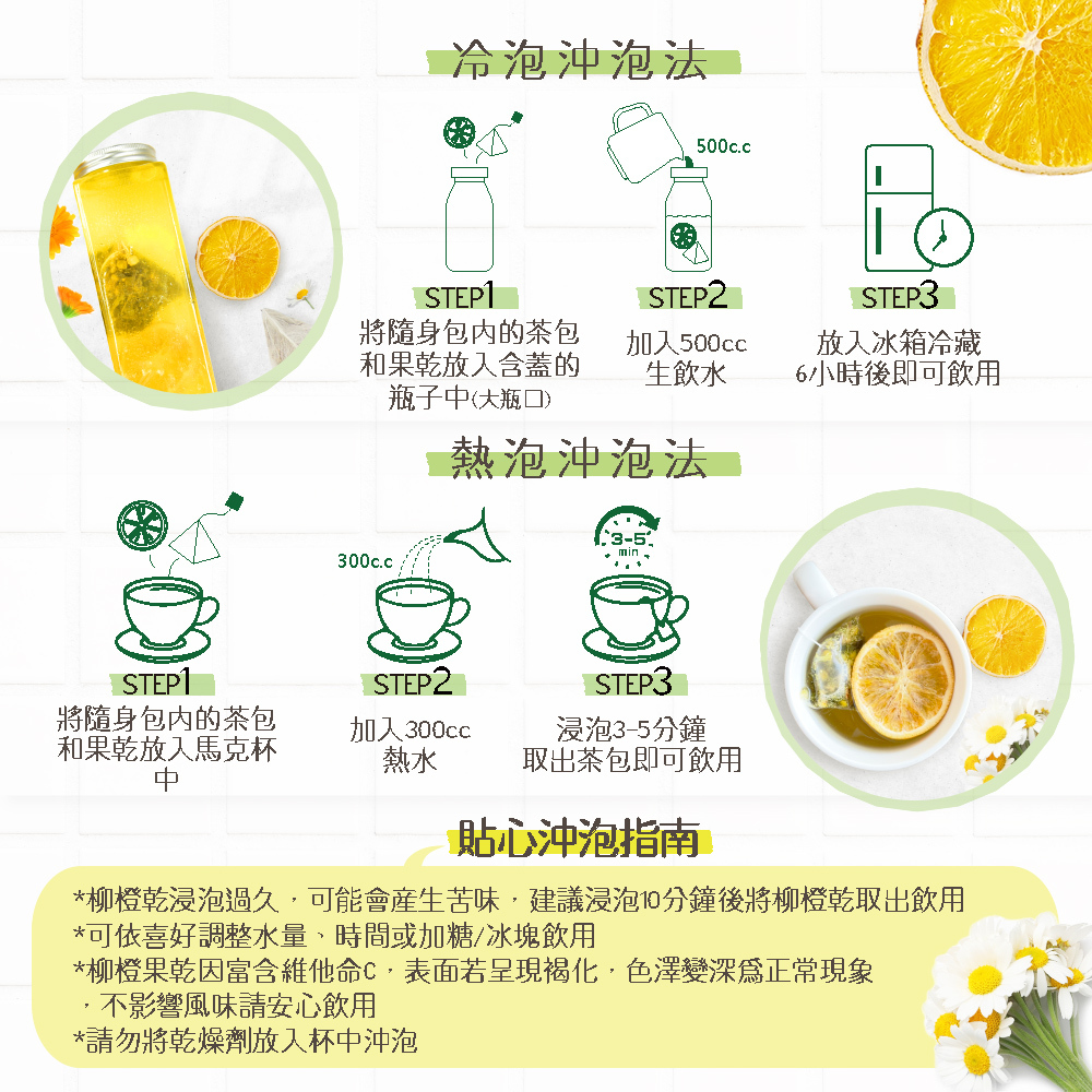◎ Fresh green tea as the base, with sweet and sour orange dry, give the fruit tea rich texture