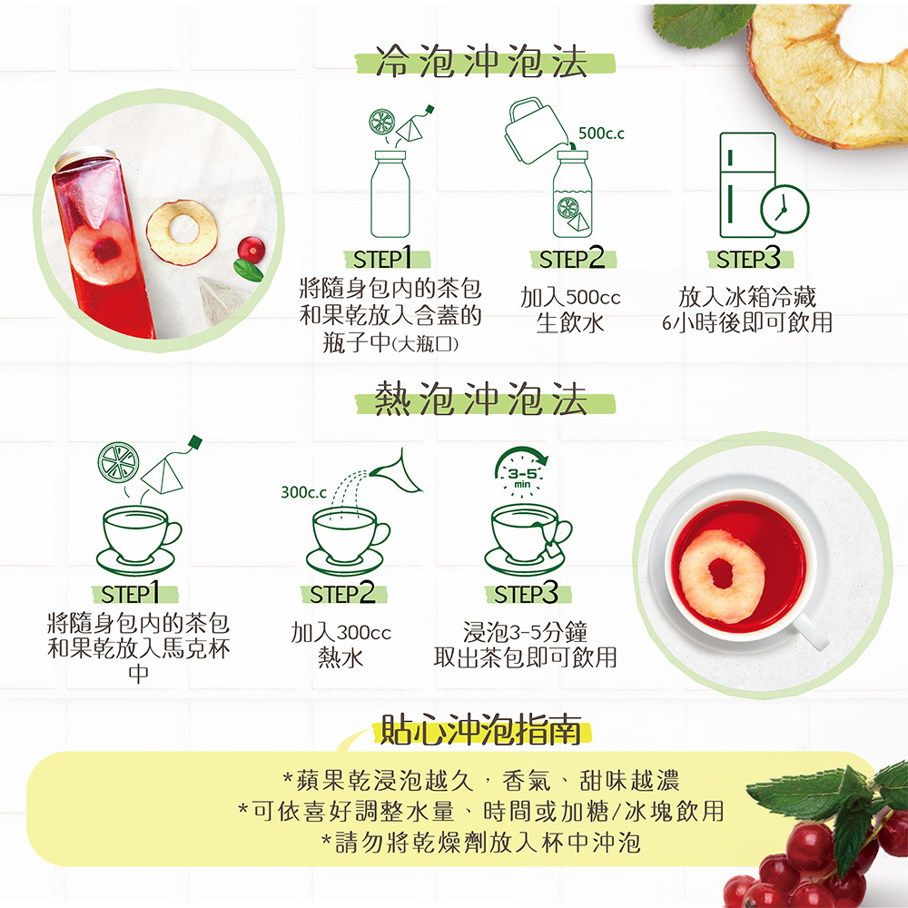 ◎ Sweet and sour flavor of colorful berries and dry apples, harmonizing the most natural flavor of fruit tea