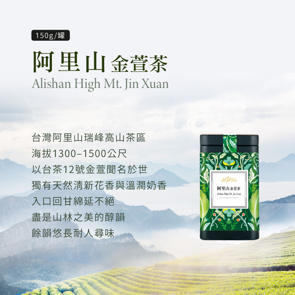 ◎阿里山金萱茶:來自台灣知名阿里山瑞峰茶區的高山金萱,海拔1300–1500公尺的高山孕育出台茶12號金萱獨有天然清新花香與溫潤奶香。入口回甘綿延不絕,盡是山林之美的醇韻,餘韻悠長耐人尋味。