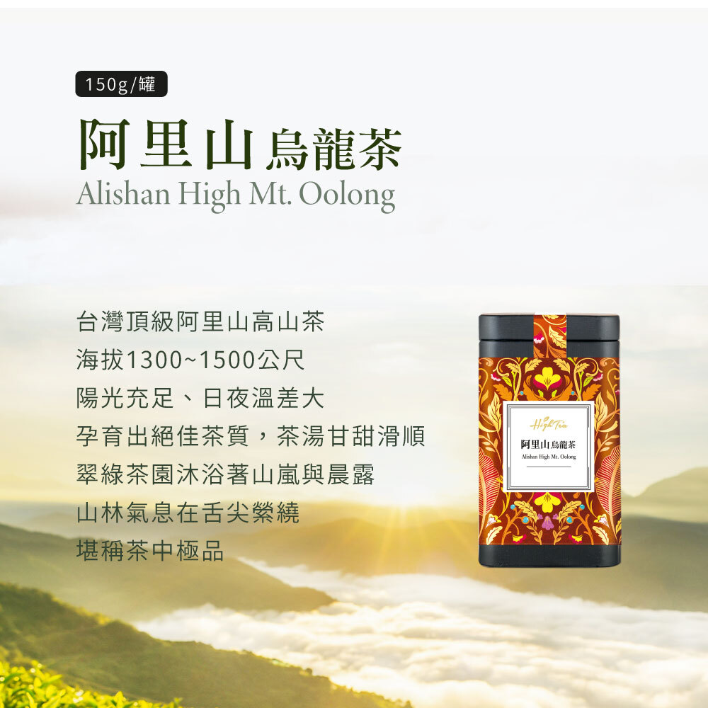 ◎阿里山烏龍茶:台灣頂級阿里山高山茶,海拔1300~1500公尺,陽光充足、日夜溫差大,孕育出絕佳茶質,茶湯甘甜滑順,翠綠茶園沐浴著山嵐與晨露,更能感受到山林氣息在舌尖縈繞,堪稱茶中極品。