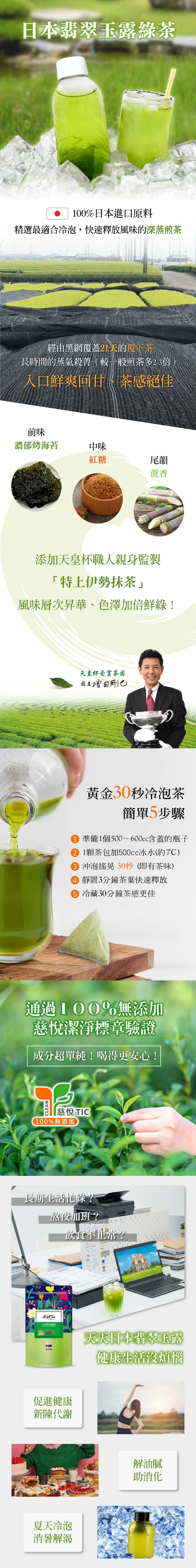 ◎深蒸煎茶擁有適合冷水沖泡的特性,能迅速散發烤海苔、紅糖等日式綠茶香氣